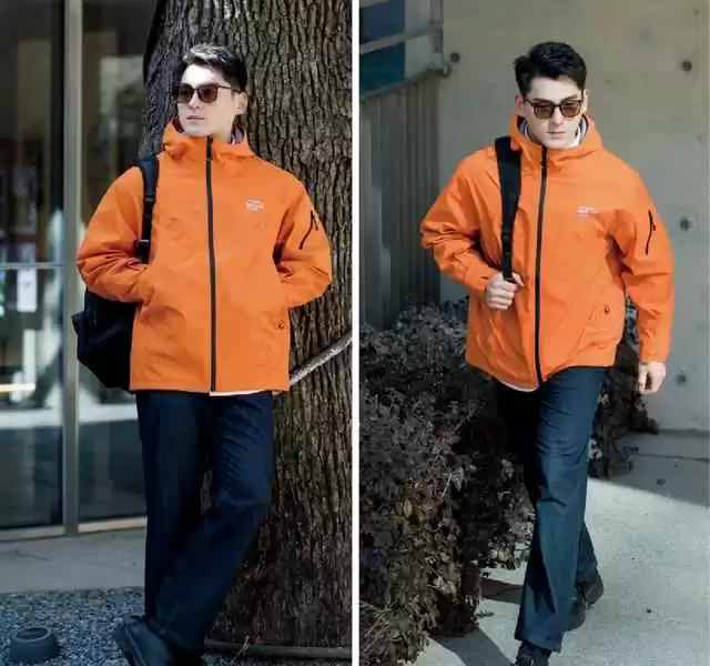 不同场合搭配不同:商务休闲用单色冲锋衣配西装布直筒裤,户外运动选撞色冲锋衣加弹力裤,日常通勤则用立领款式、九分裤和轻便小白鞋,轻松应对各种场景。