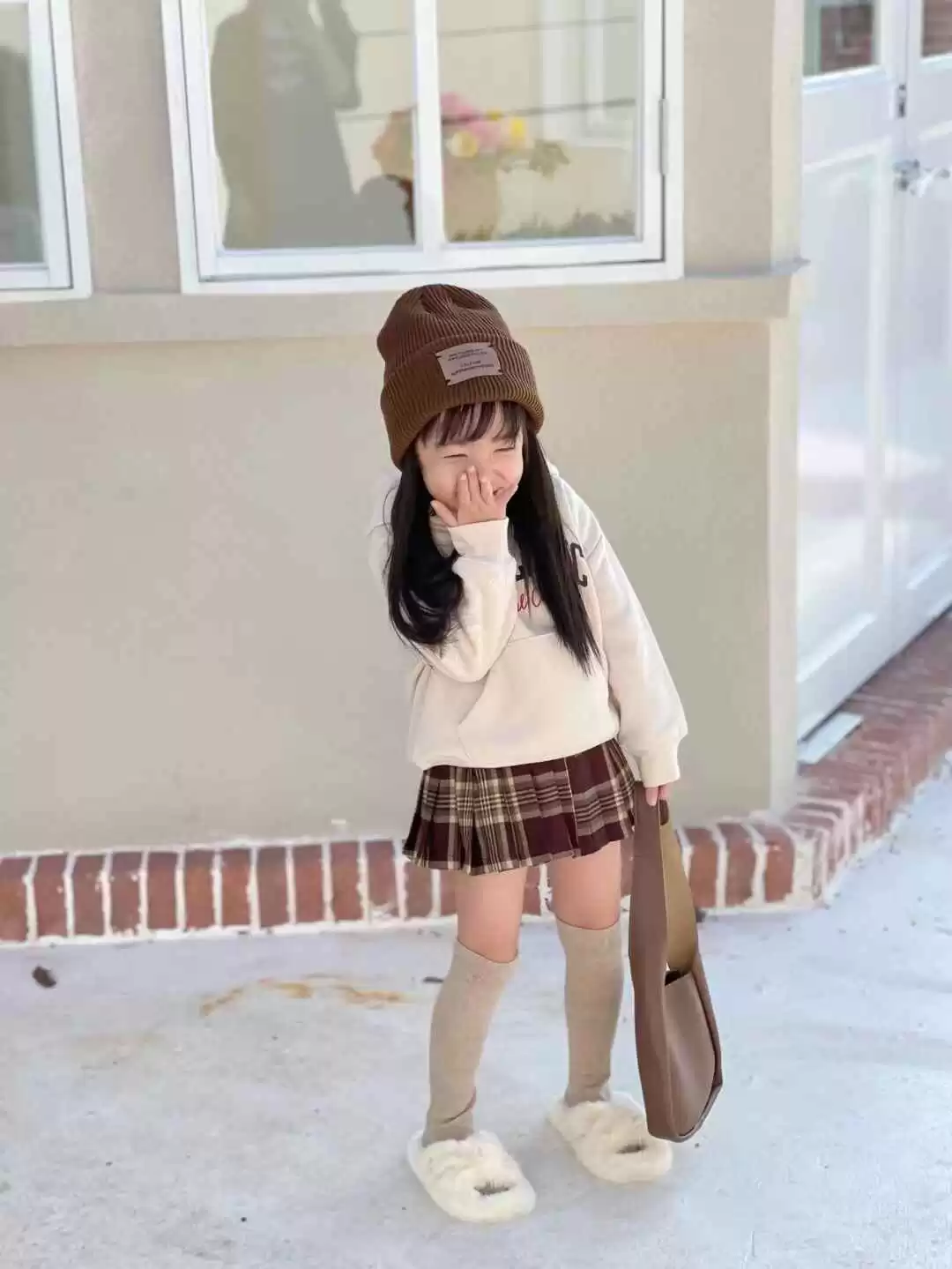 初秋穿搭可以试试叠穿法,薄针织配短裙,豹纹帽点缀增加个性。选择宽松的格子连衣裙,搭配短袜保暖又时尚,颜色呼应更显高级。