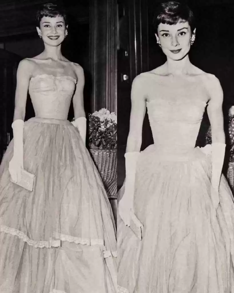 4. 因《龙凤配》获奥斯卡提名时,赫本穿了这件礼服,完美展现了她练芭蕾出身的好体态,线条流畅,优雅十足。