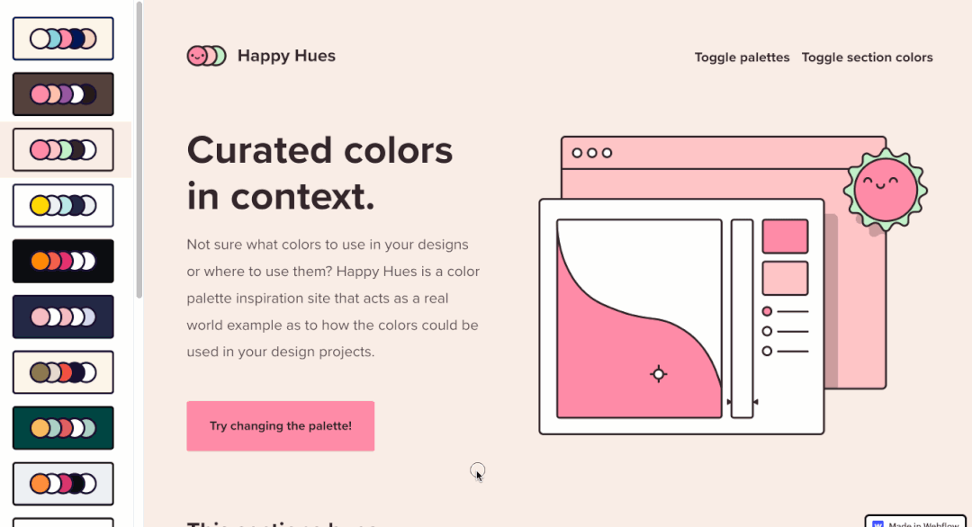 这个网站像色彩魔法师!点击紫色按钮选基础色,再点生成键,瞬间变出整套配色方案: