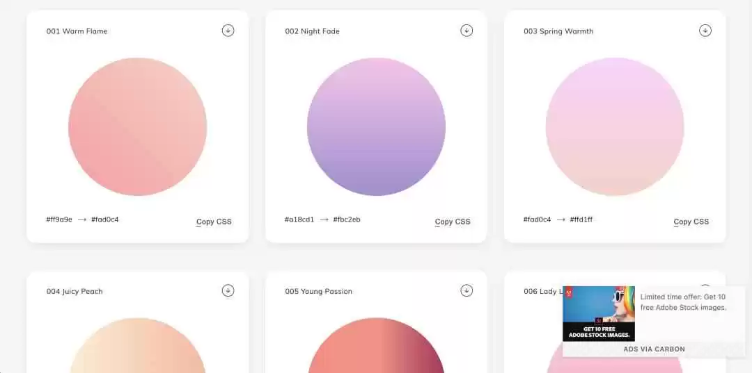 超全渐变图鉴!点色块右下角Copy CSS就能一键取色