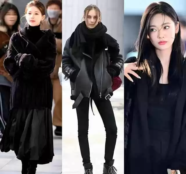 不管是全黑还是局部用黑色,它永远不会抢风头,但总能吸引目光。冬天穿黑色,可以参考一些搭配灵感,比如……