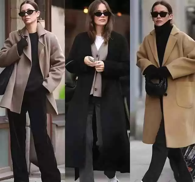 颜色本身不老气,关键在搭配。深色如黑色、驼色、深蓝都是经典色,搭好了很洋气。
