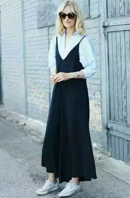 想玩叠穿时:谁说吊带裙一定要单穿?在里面搭一件紧身T恤或轻薄打底衫,立马就变成了另一种休闲又时髦的风格-3。这时候,你里面穿个最普通的无痕内衣就行,完全没压力。白色T恤搭配吊带裙是经久不衰的经典组合,清爽又有层次感-3。