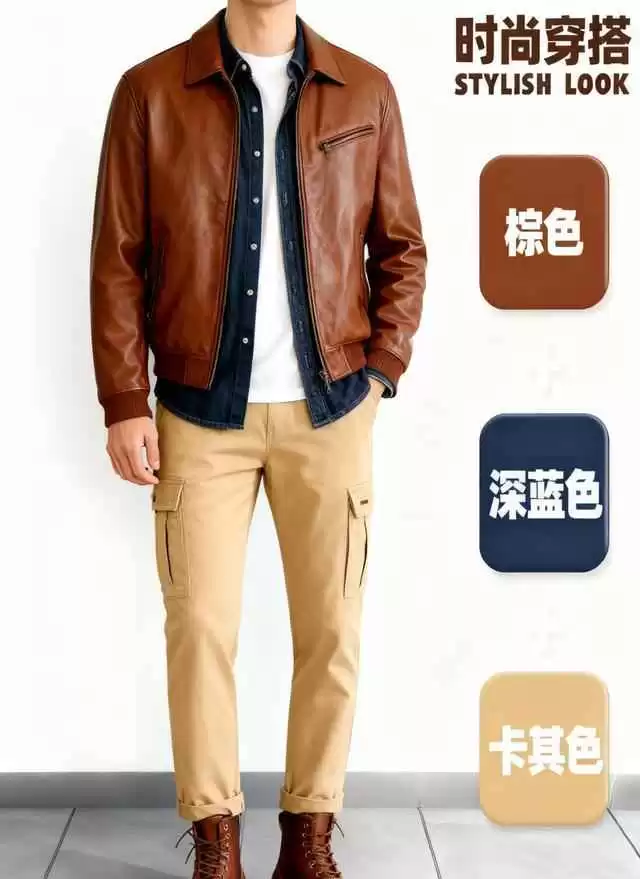 比如复古工风棕色皮衣,可以换成Schott NYC的可拆卸内胆款,一衣多穿超灵活。