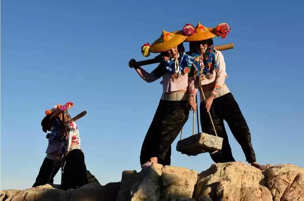惠安女以勤劳贤惠出名,短上衣、宽裤子方便她们在海边干活;斗笠和头巾可以防晒防风;银腰带耐腐蚀,既结实又漂亮。