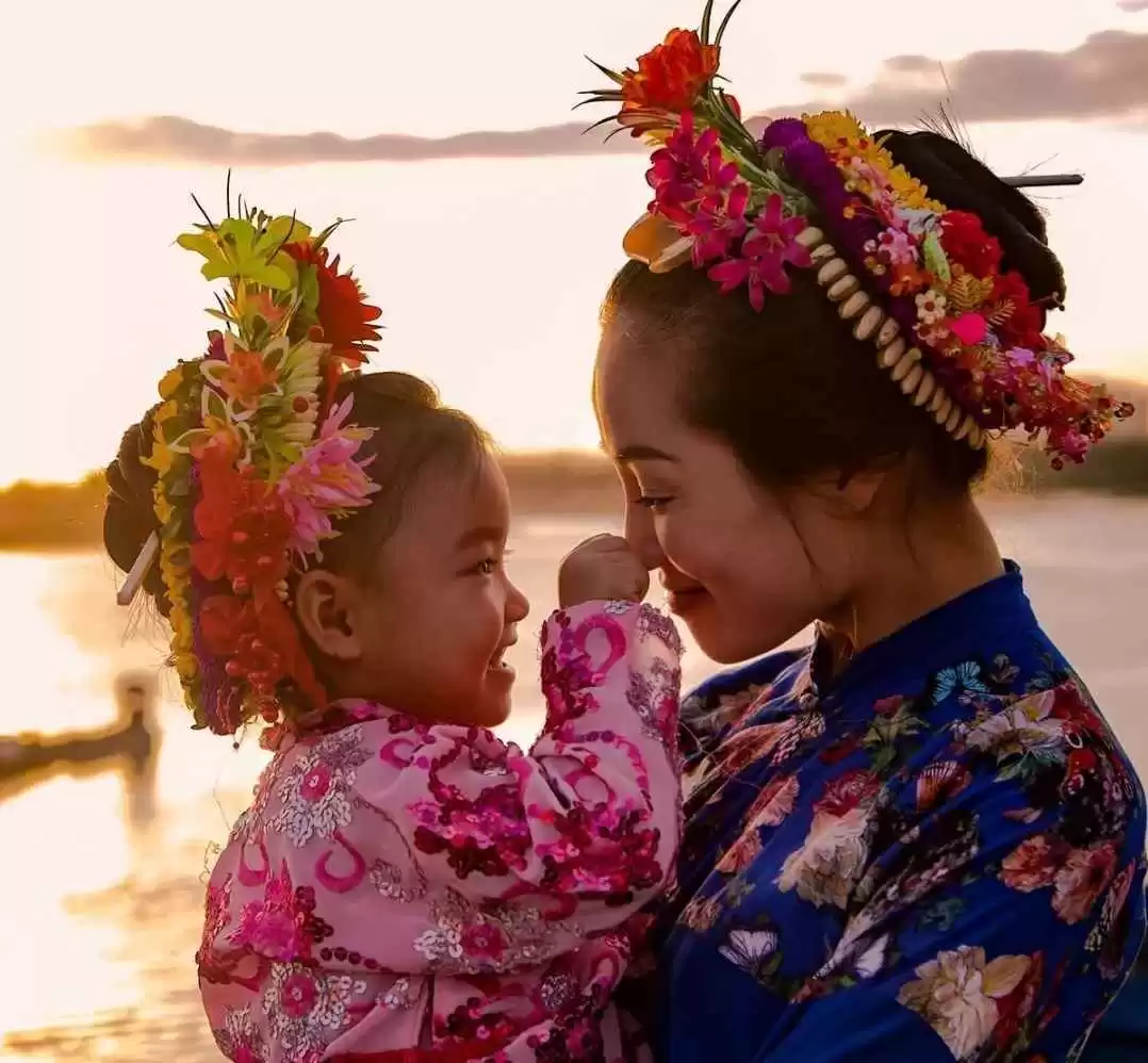 无论春夏秋冬,不管年轻年长,她们每天都不厌其烦地把头发盘起,用一圈圈鲜花簪在头上,五彩缤纷,香气扑鼻。好看得让人眼花缭乱!