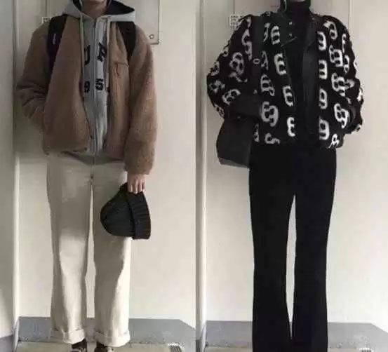 黑色毛衣搭配淡色系打底衫,在当下时尚圈特别受欢迎,宽松裤子能巧妙遮住腿粗的烦恼。右边小姐姐的穿法则更显利落,黑色外套加棕色内衬,看起来低调却不失高级感,这种搭配在秋冬季节非常抢眼,简约中透着品味。