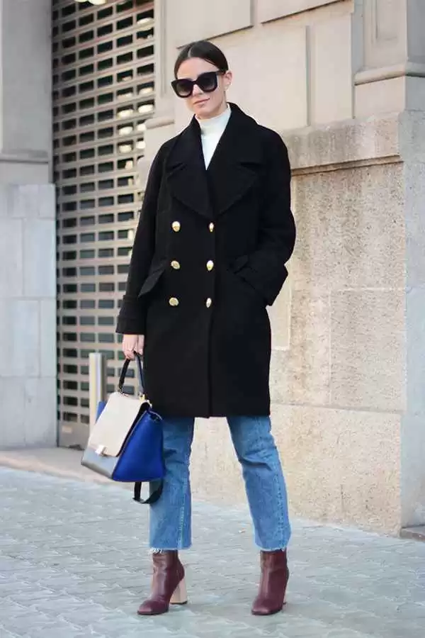 答: 一双棕色或黑色的德比靴或简约款的切尔西靴是你的最佳选择。搭配深色直筒牛仔裤或者灰色/卡其色的休闲西裤都没问题。记住裤子要合身、笔挺。这样搭配休闲西装外套或者简约的羊毛大衣,就是标准的Smart Casual风格,既稳重得体又不失年轻感-8。