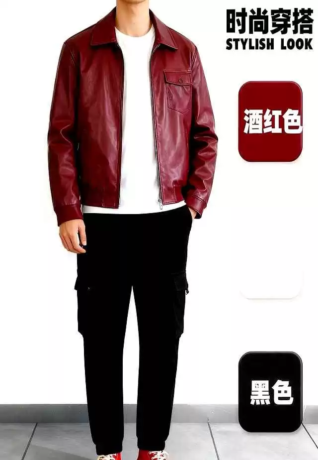 街头风玩家更直接。酒红皮夹克配黑卫衣已经满大街都是,今年把酒红换成勃艮第色,亮度降一档,攻击性立马收敛,像把低音炮调到恰到好处的音量。下身搭配做旧雾霾蓝牛仔裤,裤缝的磨白处和夹克的亮面皮形成“新旧对比”,站在滑板店门口,没人会觉得你是摆拍模特。