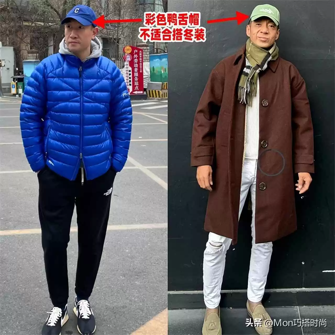 帽子得和穿搭风格匹配,中年男士讲究稳重,避免太花哨或新潮的款式,否则难驾驭又突兀。像彩色鸭舌帽虽然个性,但搭配冬季衣服容易不协调。