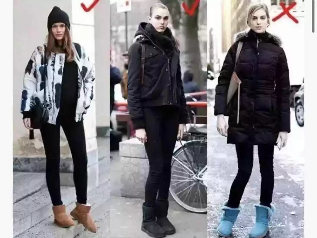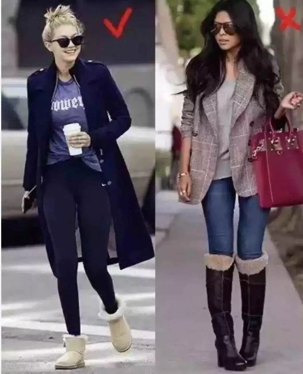 那些镶满钻或带太多装饰的UGG,建议别选了。还有全身是毛的款式,也最好避开。太繁琐的设计会让本来就有分量感的UGG更显笨重。