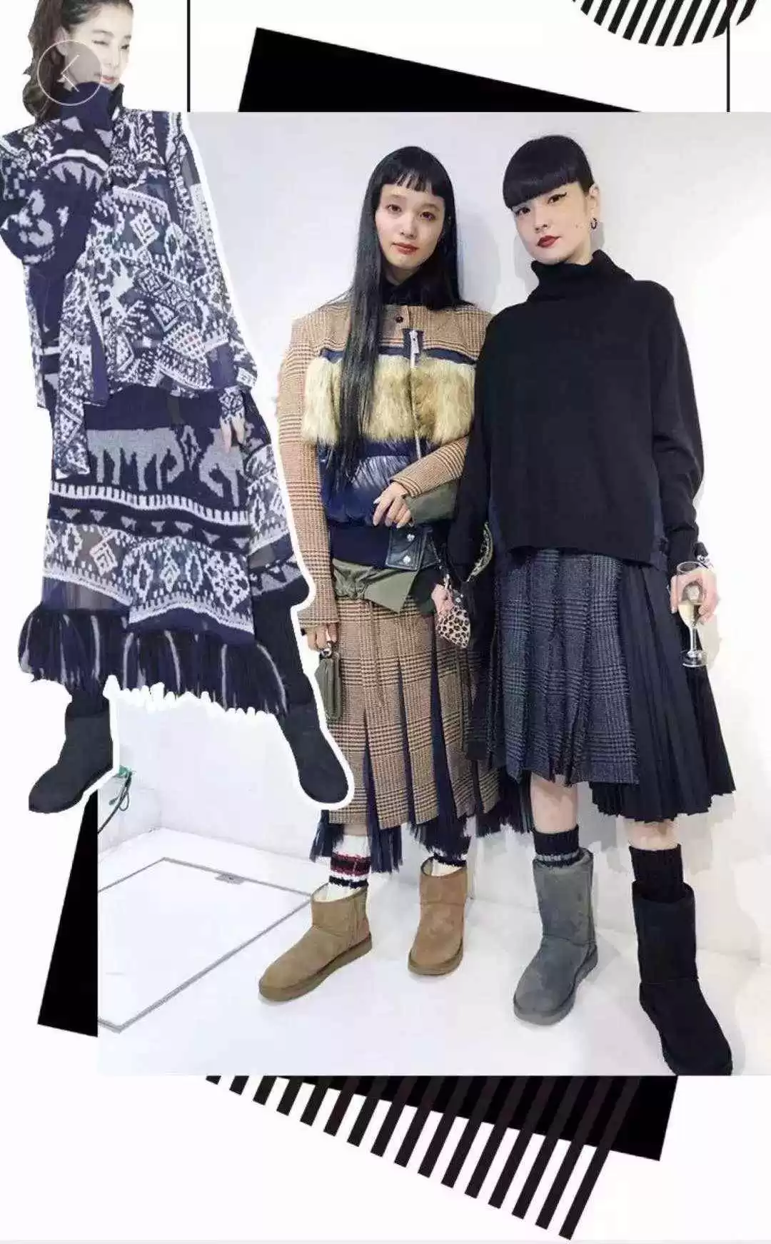 实用干货来啦!除了小脚裤+UGG,今年流行一种新穿法:五分裙+UGG雪地鞋!