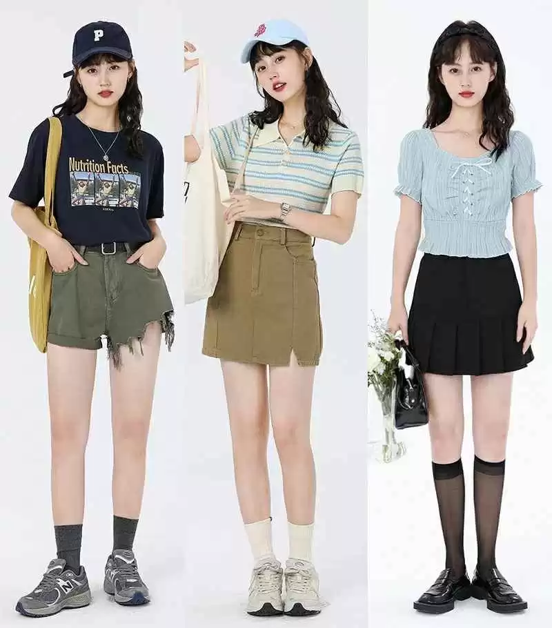 如果腿型或肩颈不够完美,可以保守点露脚踝,比如高腰半身裙或九分裤,显高又清爽。