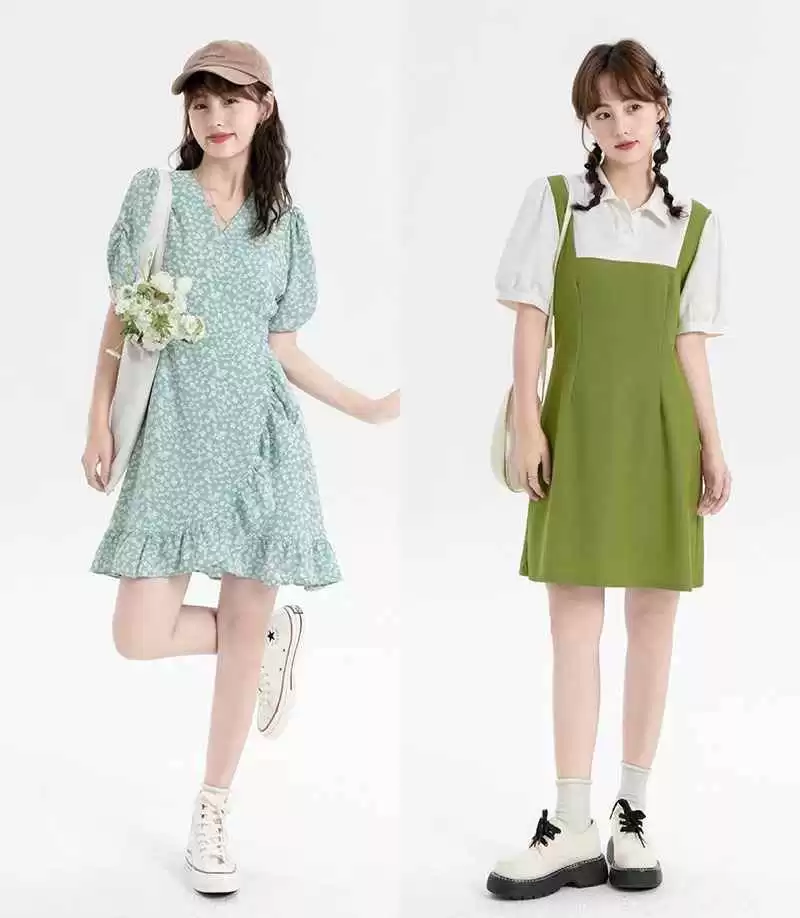 喜欢甜系风的女生多半爱穿裙装,尤其是收腰连衣裙,配上泡泡袖遮肉又减龄。搭个精致背包、帽子或项链,整体造型更吸睛。