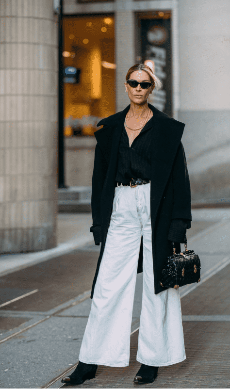 3. 白色裤子:点亮沉闷冬季的“反光板”