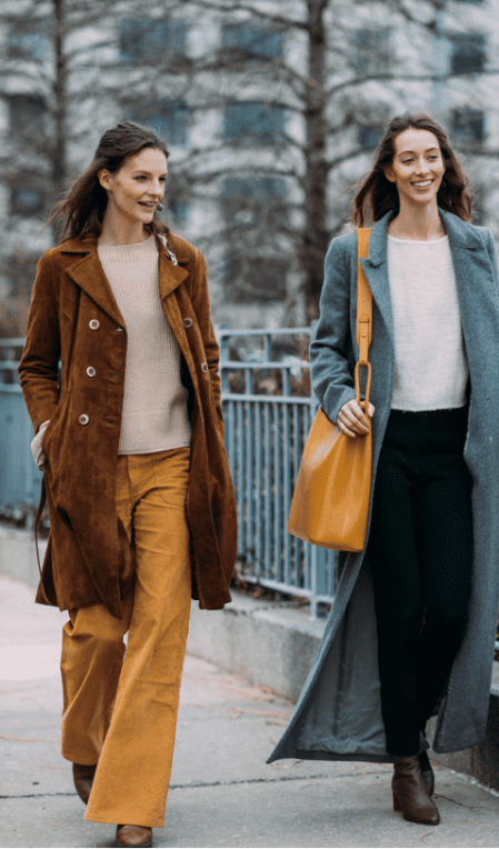 要说和中长款大衣最配、最能穿出飒爽气场的,阔腿裤绝对排头一名-6。它那种走路带风的范儿,和大衣的廓形简直是天作之合。但穿阔腿裤搭配大衣,最忌“上下一般宽”,变成一个移动的矩形-3。