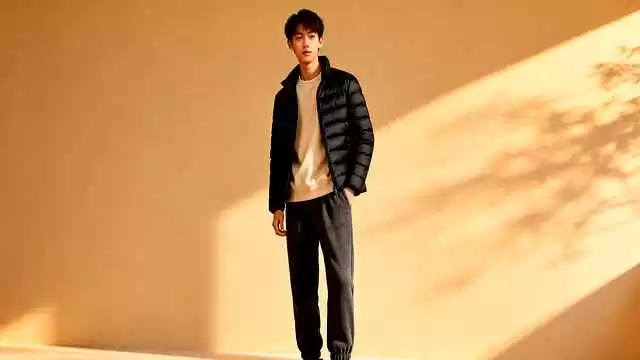 第二套方案更简约:黑色短款羽绒服配浅米色卫衣,加深灰束脚裤。核心是“短和修身”。黑色羽绒服收紧整体线条,不给身高拖后腿。这不是偷懒,而是发挥服装的真正作用。深色束脚裤减少腿部膨胀感,浅色卫衣打破沉闷,短款设计视觉上缩短上身,让腿显长。鞋子选黑色,让线条连贯到底,营造垂直感。