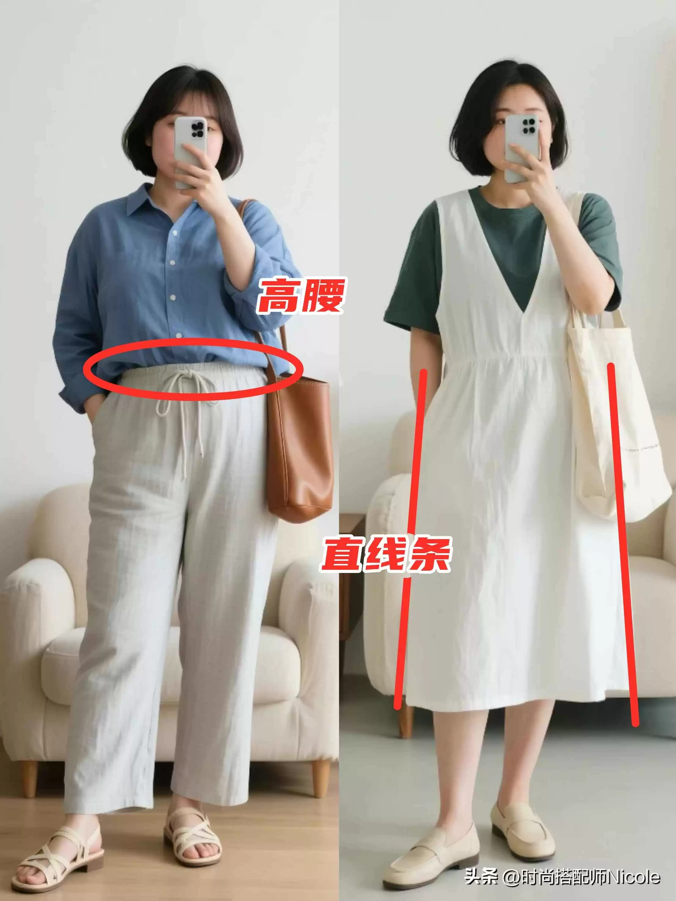② 版型是精髓:高腰+直线条=绝配