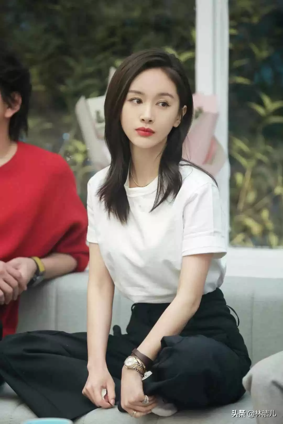 腿是王子文的优势,所以穿搭要突出大长腿。选裤子时,腰线要高,高腰裤是首选,无论长短都能拉长比例。王子文常用高腰裤凹造型。