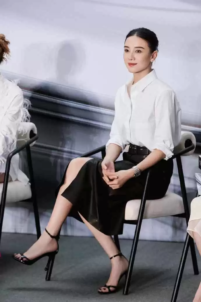 白衬衫加皮裙是通勤绝配,利落又显瘦,尤其搭上一字带高跟鞋,瞬间拉长身形,女人味十足。