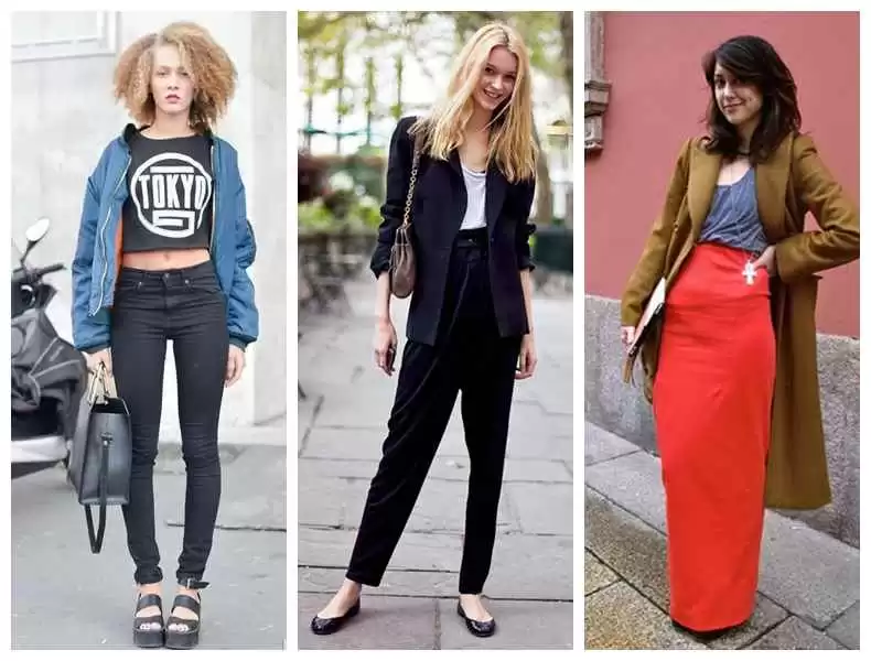 小个子女生穿搭重在比例,选高腰款和V领上衣。搭配高跟鞋或厚底鞋,简单配色更显高。