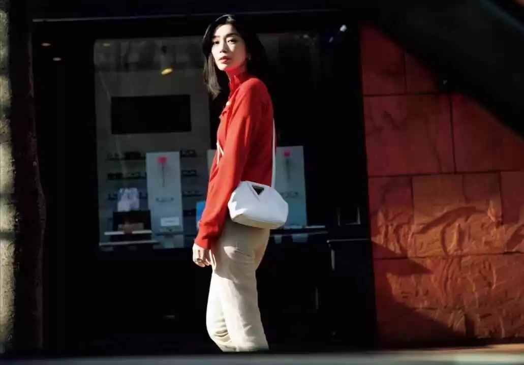 这条红裤子的色调不是纯红,而是加入了橙色和黑色,降低了浮夸感,更显质感和讲究。