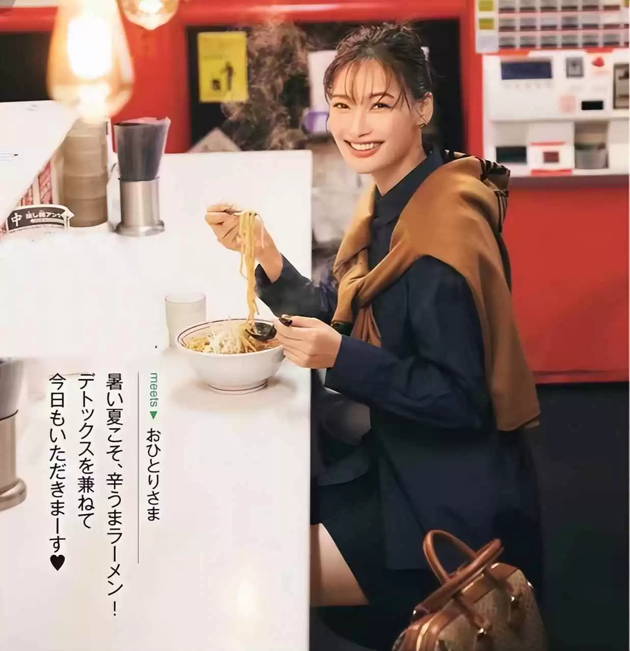 同样颜色的大包包呼应,强调酷帅感,美得更自然。