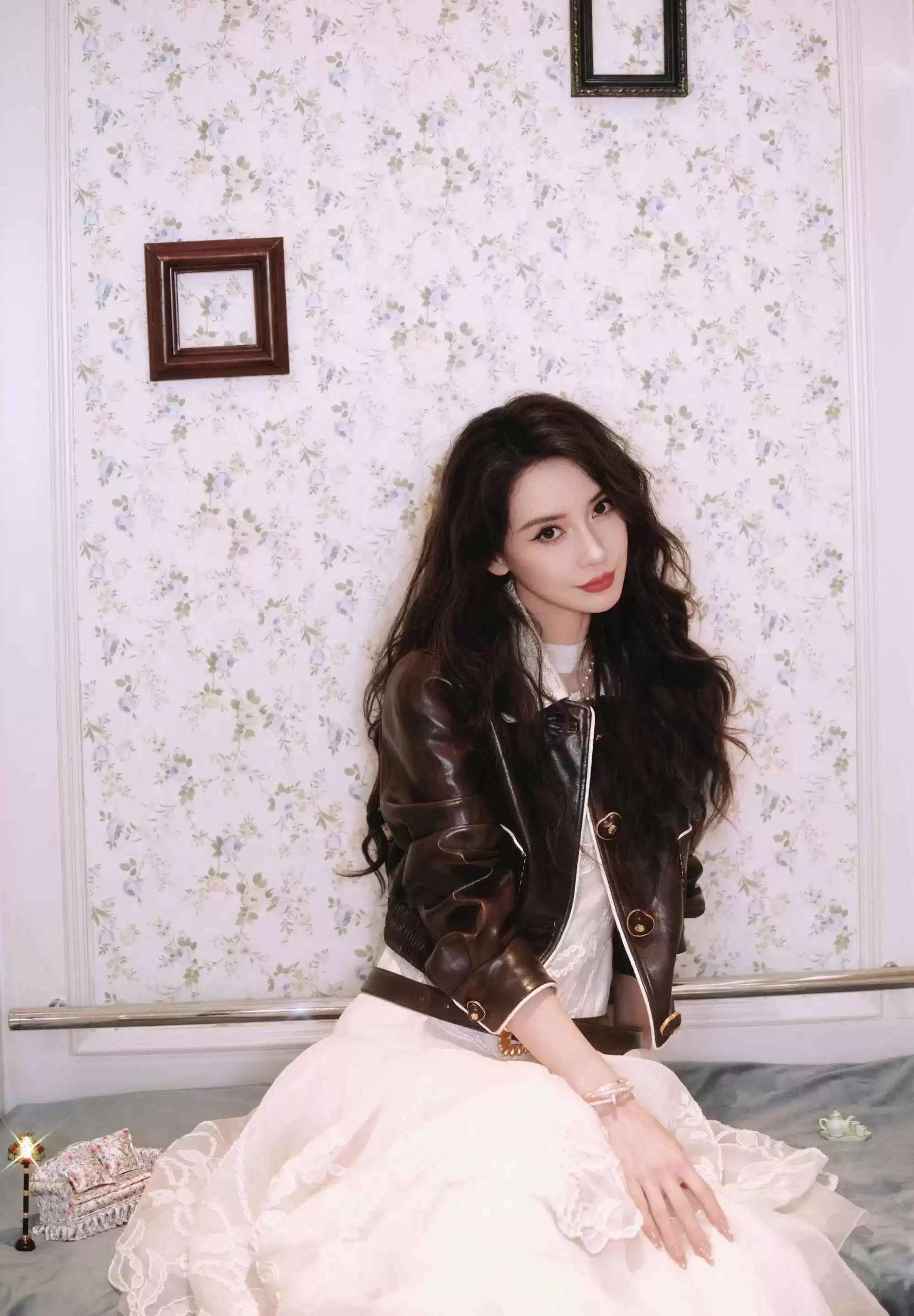Angelababy 变身“bubble girl”,堪称流光甜酷风的典范!棕白拼接皮夹克硬朗有型,带点复古机车风的飒爽。