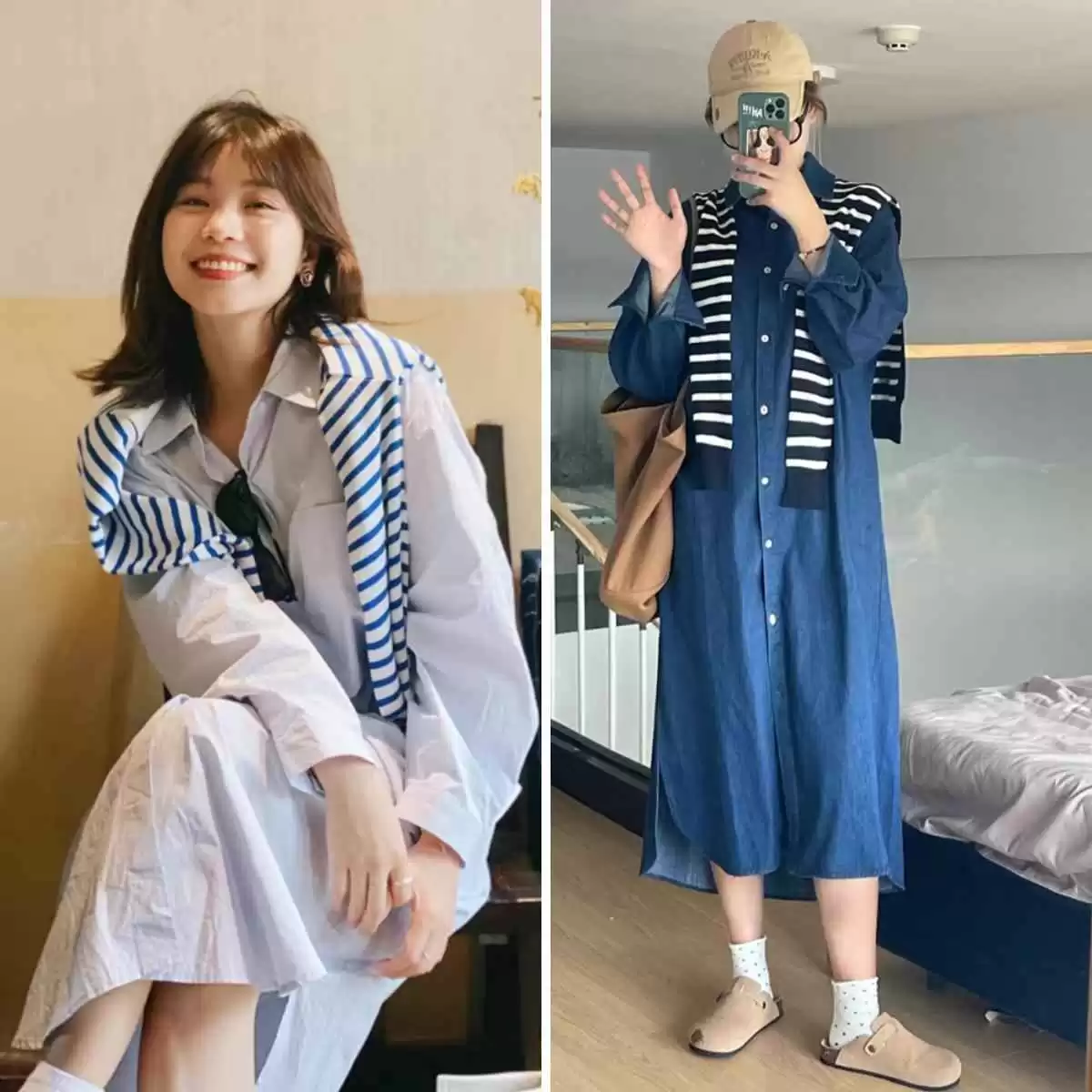 特别是穿连衣裙这种一件式单品时,既要层次感又怕冷,针织披肩就是神仙搭配!条纹款更是点睛之笔。