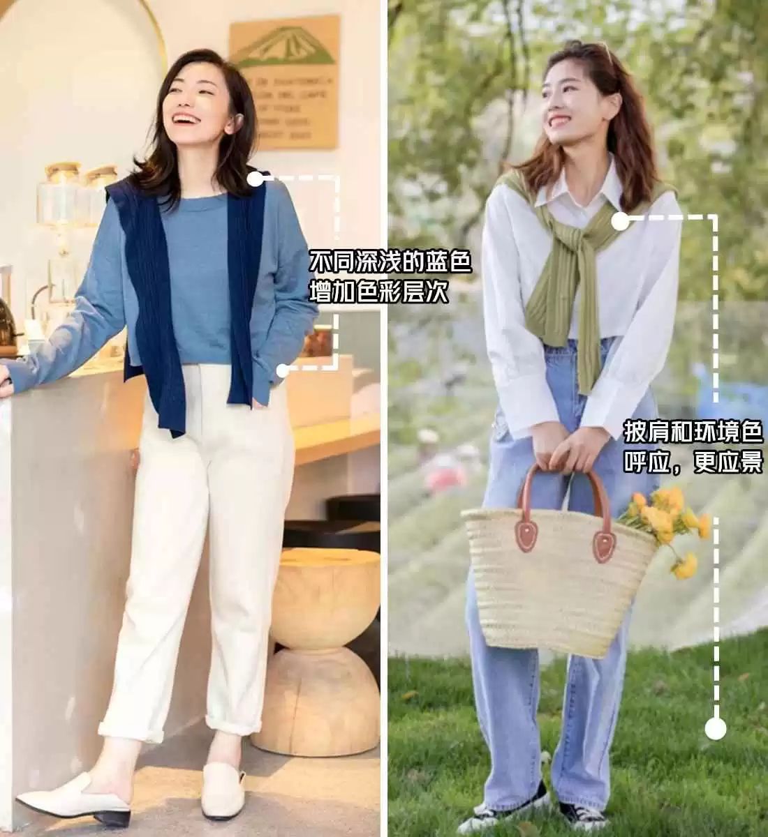 ①.时髦秘籍:针织衫当披肩