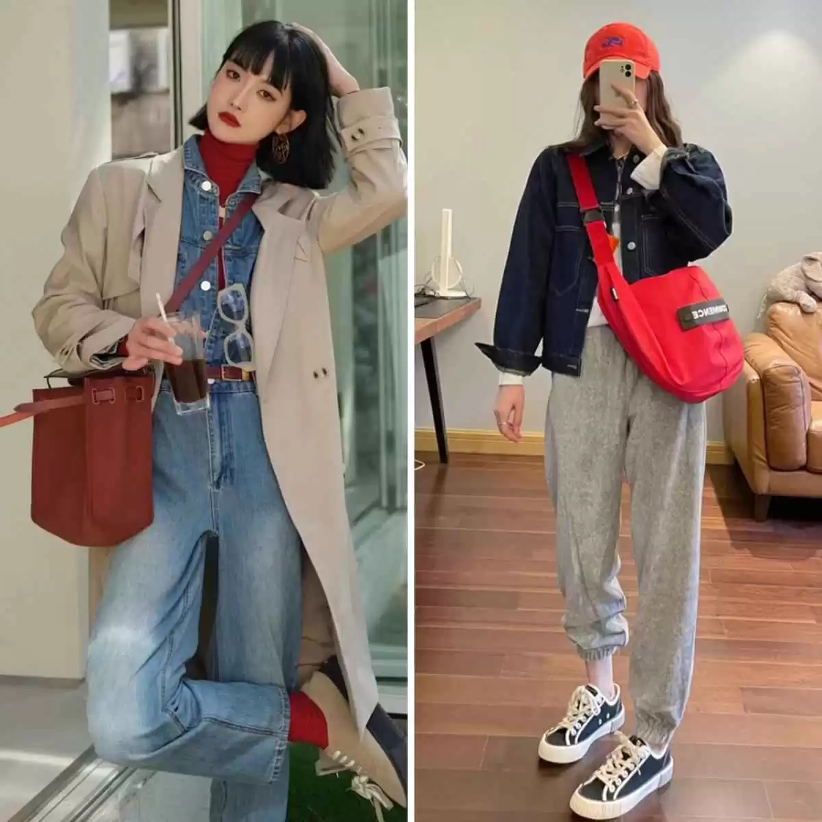 牛仔自带不羁感,遇上热烈的红色,整个造型瞬间活起来!满满青春活力挡不住。