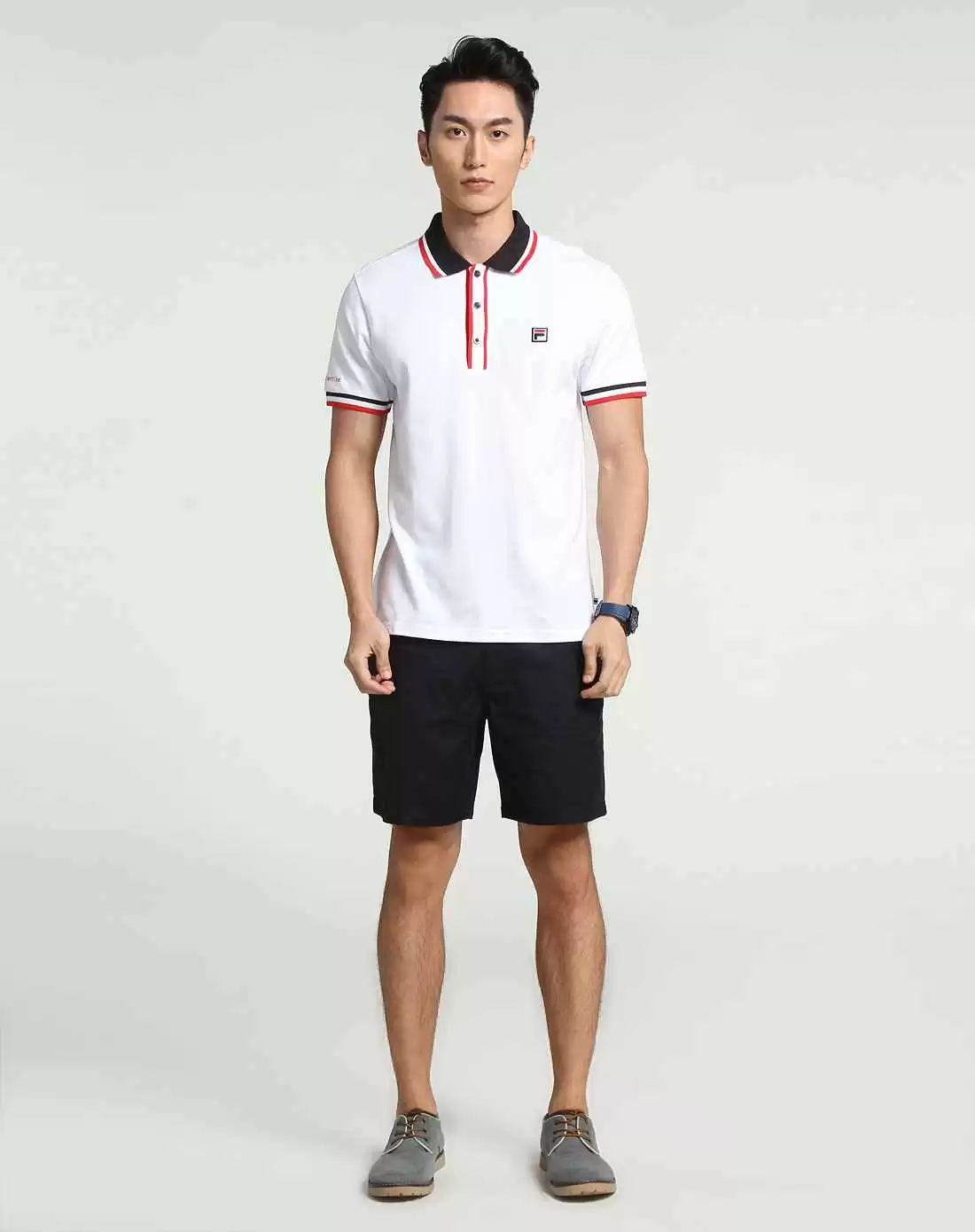 更进阶的穿法是在Polo衫内搭衬衫或薄毛衣,利用不同材质的碰撞营造层次感。甚至可以打上领带或领结,营造出学院风格的气息-6。