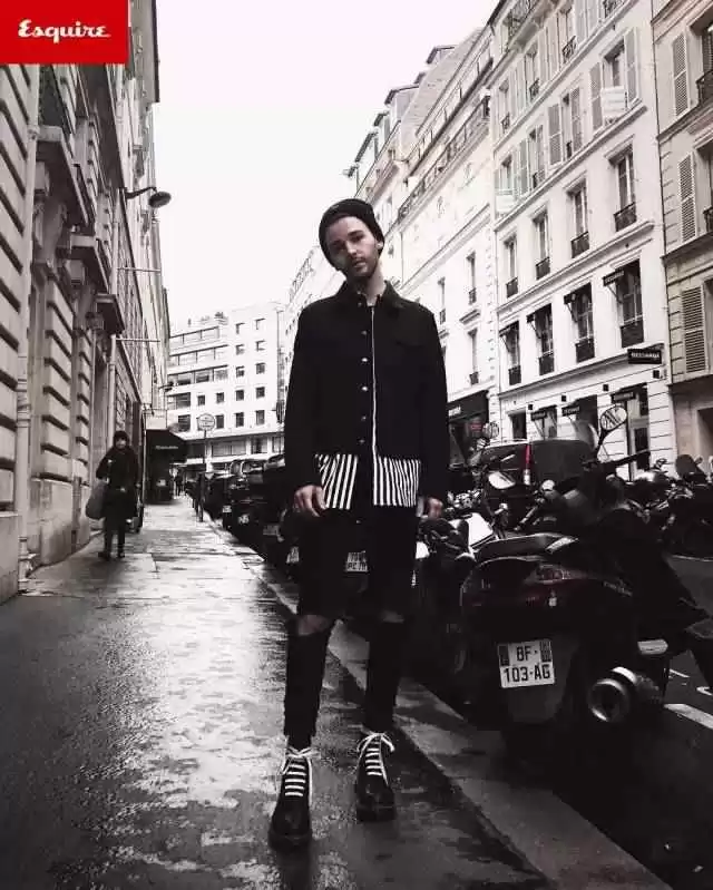 最后提醒一句,很多瘦子容易驼背,这可得注意。只有挺直腰板,肩膀自然后扩,衣服才能更挺括。看看Drew,再瘦也能拍出杂志大片的感觉。