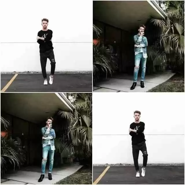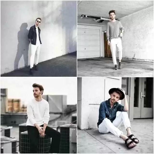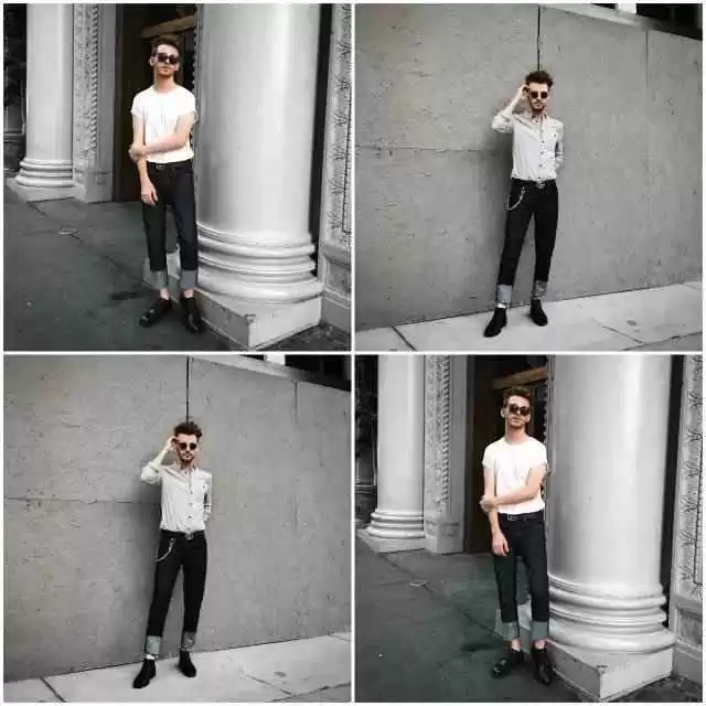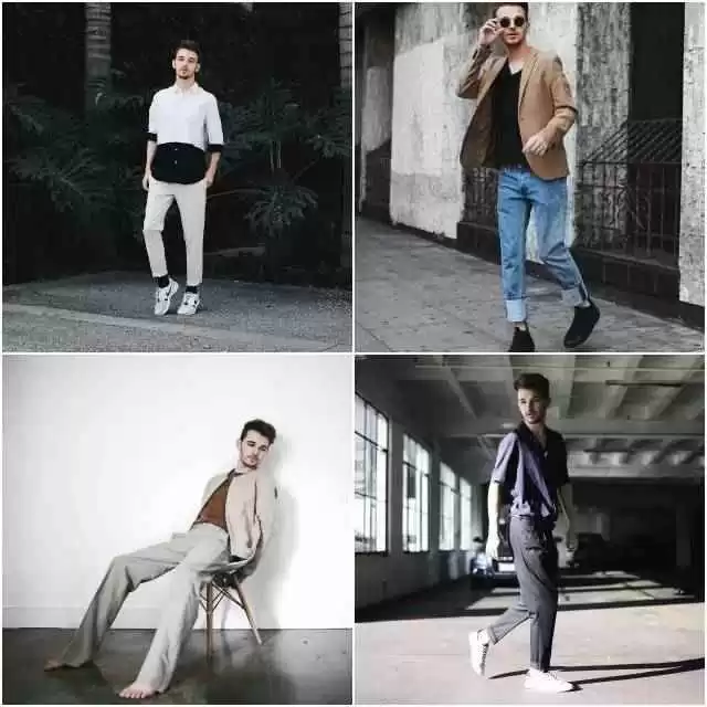 矮个子男生可以学Drew,露脚踝的同时还要露腰线。腰线是黄金比例的关键,盖住就矮5cm,露出就高5cm。