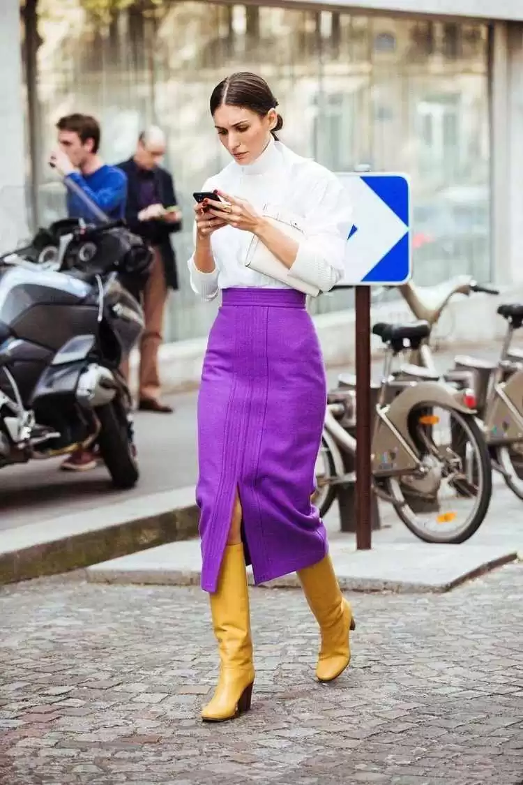 你可以选一条开叉半裙来配长靴,这样既能若隐若现地露出靴子,又增添了几分时尚感。