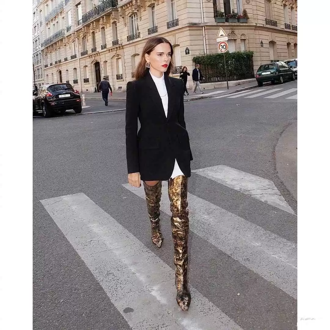 当然,前面提到的中长靴可能没有过膝靴那么显腿长,小个子女生最好选过膝款,搭配西装和短内搭,你也能穿出超模气场。