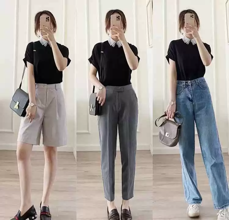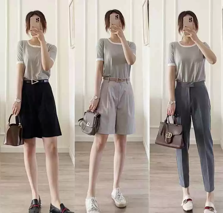 中性风穿搭特别适合成熟女性,浅灰色T恤配黑色或灰色高腰五分裤,干练又帅气。换成深灰色烟管裤和乐福鞋,职场穿也超有气质。