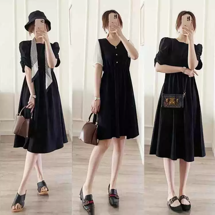 黑色连衣裙夏天穿容易显沉闷,配个小巧水桶包或复古方包,立马增添精致感。加上渔夫帽、丝巾或腕表等配饰,优雅又大方。