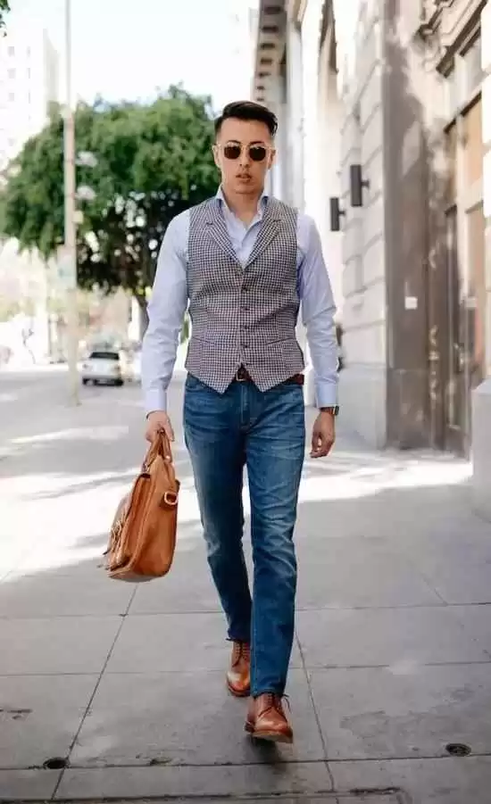 @都市闲人 问:看了文章心动了,但我是个中年大叔,穿牛仔裤到底能不能配皮鞋啊?会不会显油腻?