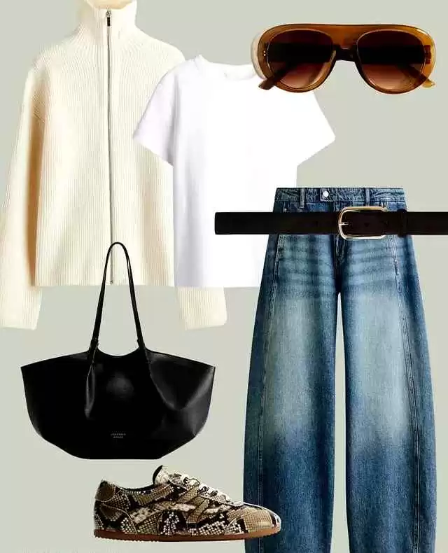 解读:用质感大衣搭配日常毛衣和牛仔裤,轻松穿出高级感。看似简单,每件单品都彰显品味。