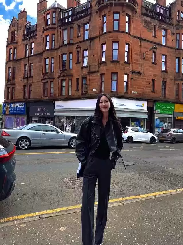 还记得2024年10月北京三里屯的街拍吗?一个女孩穿着焦糖色再生羊毛大衣,配植物皮革半裙,脚踩哑光金乐福鞋,走了十步路,衣服颜色没变,但光影交错:针织吸光、皮革折光、金属反光,效果超吸睛。