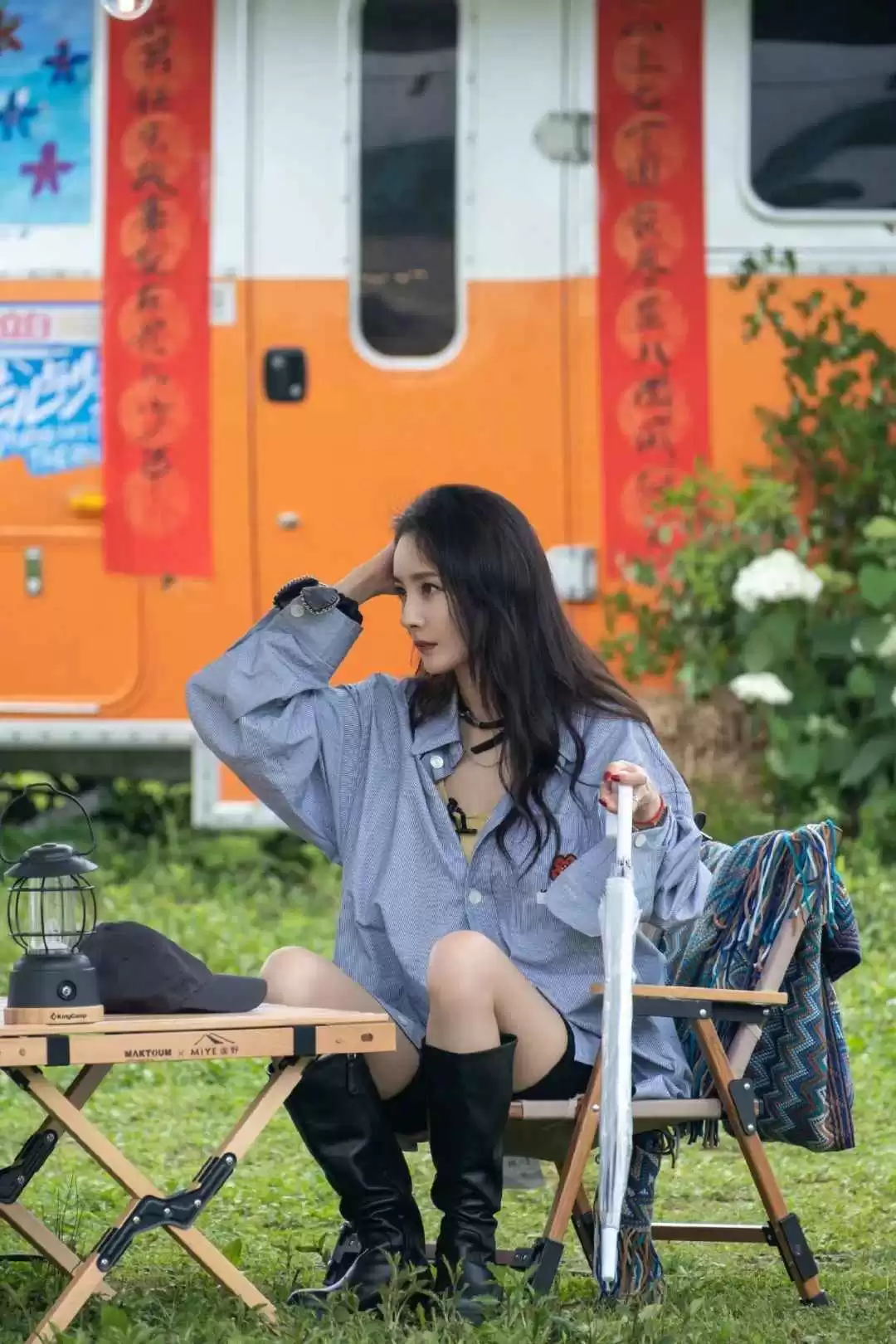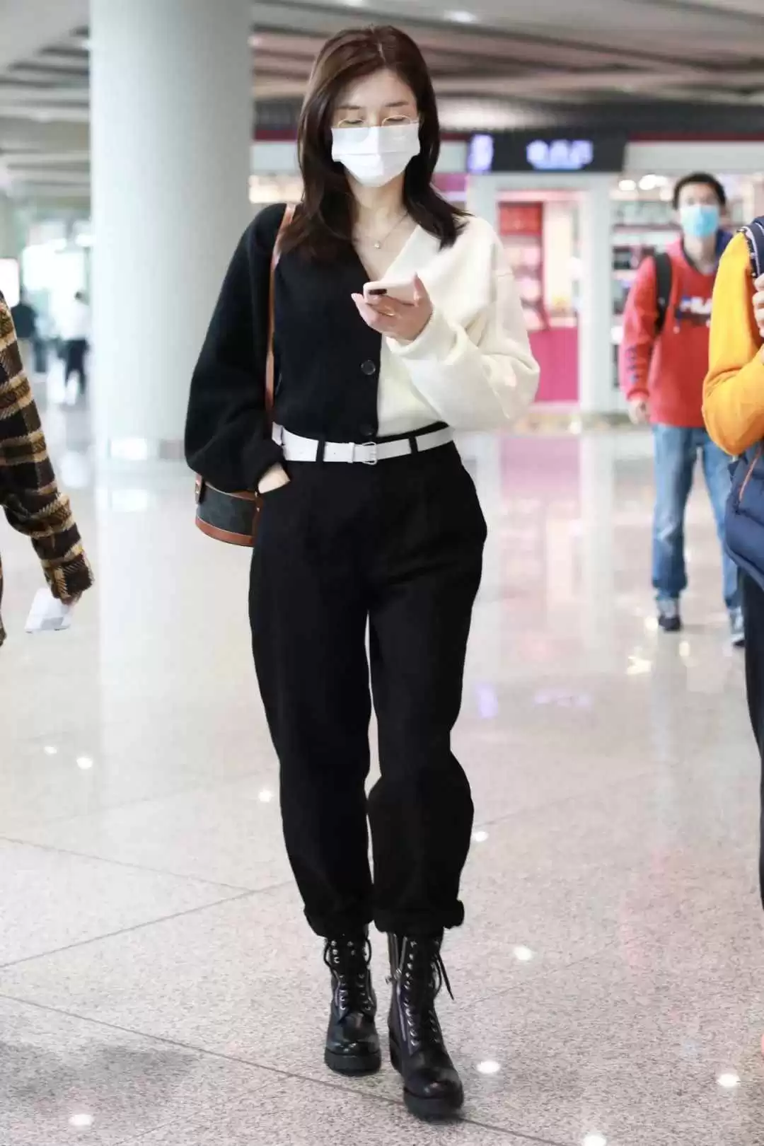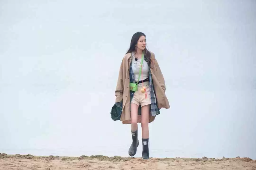 比例很重要,江疏影会用颜色区分上下身,高腰线显得干练,裤靴连贯拉长线条。