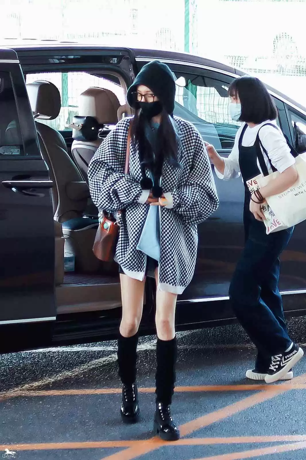 幂式光腿穿搭不实用,咱们可以穿保暖袜子或长靴,或者换修身裤子。