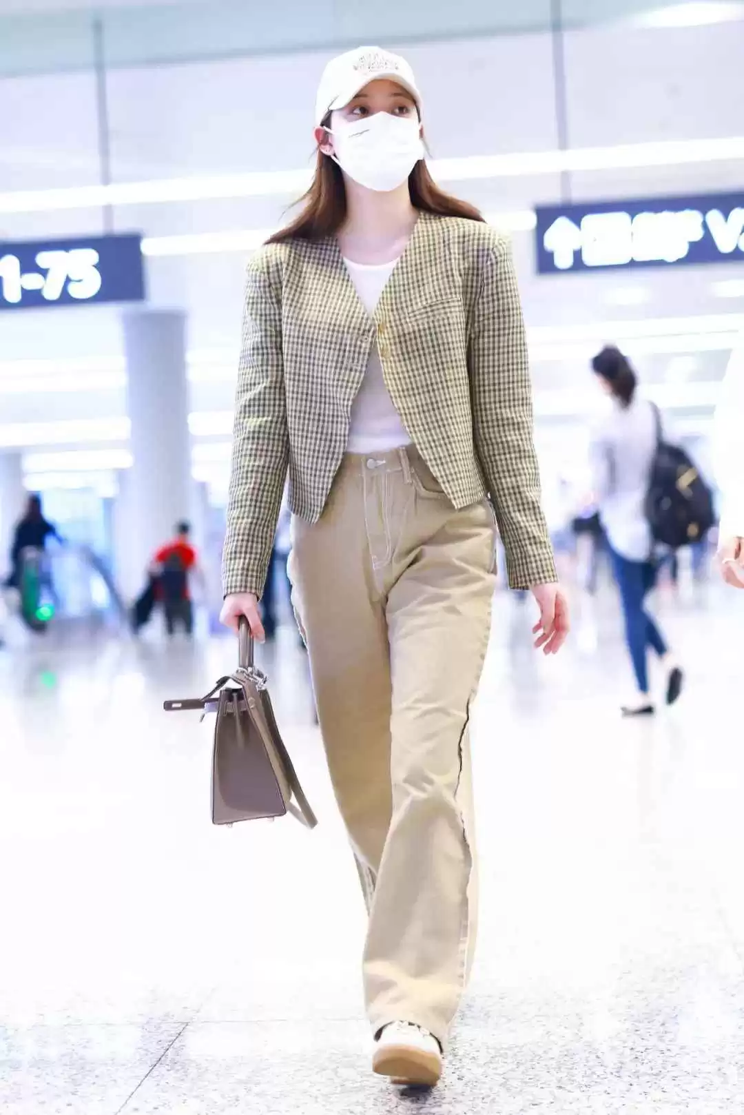 欧阳娜娜也爱格子衫,但常用运动鞋、牛仔裤搭配,显得轻松自在。