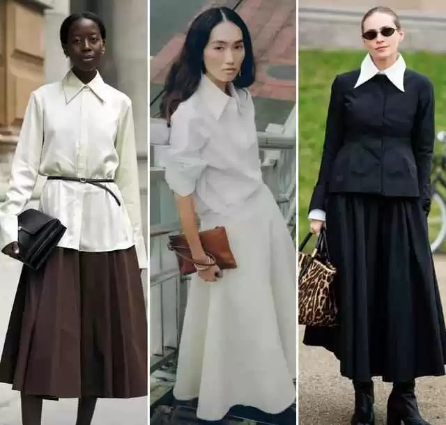 想用半裙穿出优雅感,可以配风衣或针织衫,选择A字版型或百褶裙,颜色以纯色为主。搭配高跟鞋,瞬间提升女人味,适合上班或约会。