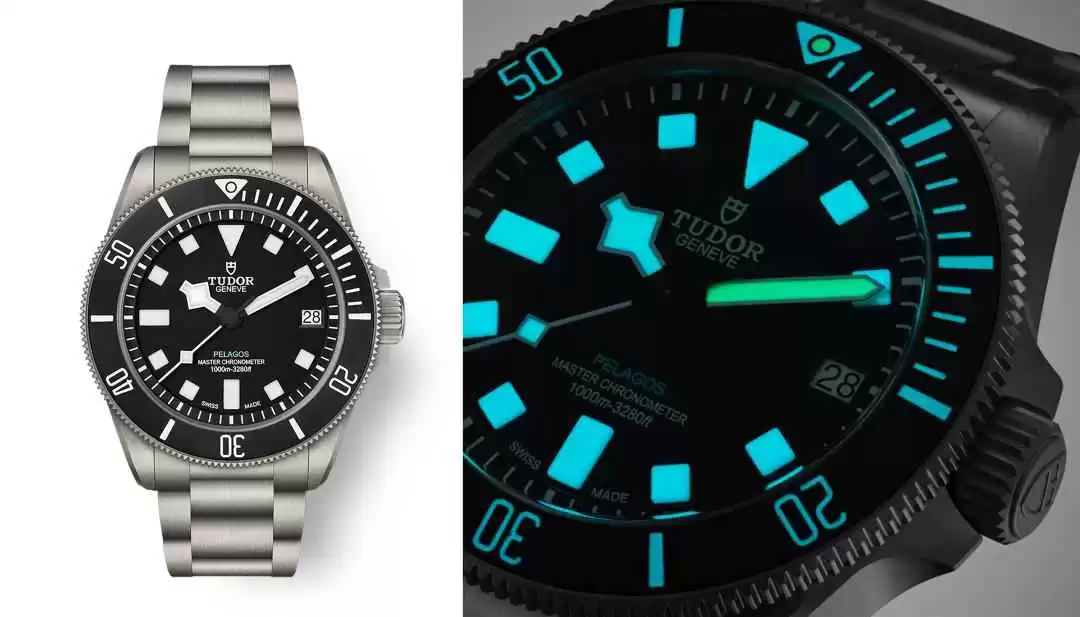 而表盘上那抹蓝绿色小字,猜它是帝舵今年的新品“领潜极致型”没跑了!
