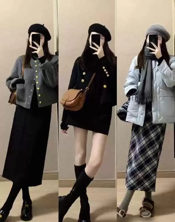- 打底裤外穿,改成连裤袜配裙子或加绒直筒裤,得体不尴尬。