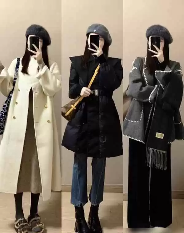 职场穿搭的新宠是羊绒大衣加羽绒内胆,既正式又保暖。