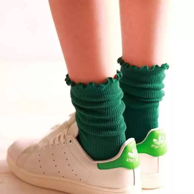 那具体咋整呢?最不会出错的CP,非各种低帮鞋莫属。首推经典中的经典——帆布鞋。高帮的其实也行,但更适合腿细长的妹子,普通身材最保险就是选低帮。匡威、万斯这些牌子一上脚,配上堆堆袜,那种校园感和休闲感立马就出来了,青春减龄,走路带风。再就是小白鞋,不管是板鞋还是运动款,白色自带清爽buff,能中和掉堆堆袜可能带来的“臃肿感”,整套look看起来干净又利索。还有这两年火到不行的玛丽珍鞋、乐福鞋,带点小皮鞋的优雅,搭配堆堆袜,乖乖的学院风里又透着一丝俏皮,特别适合通勤或者约会穿。